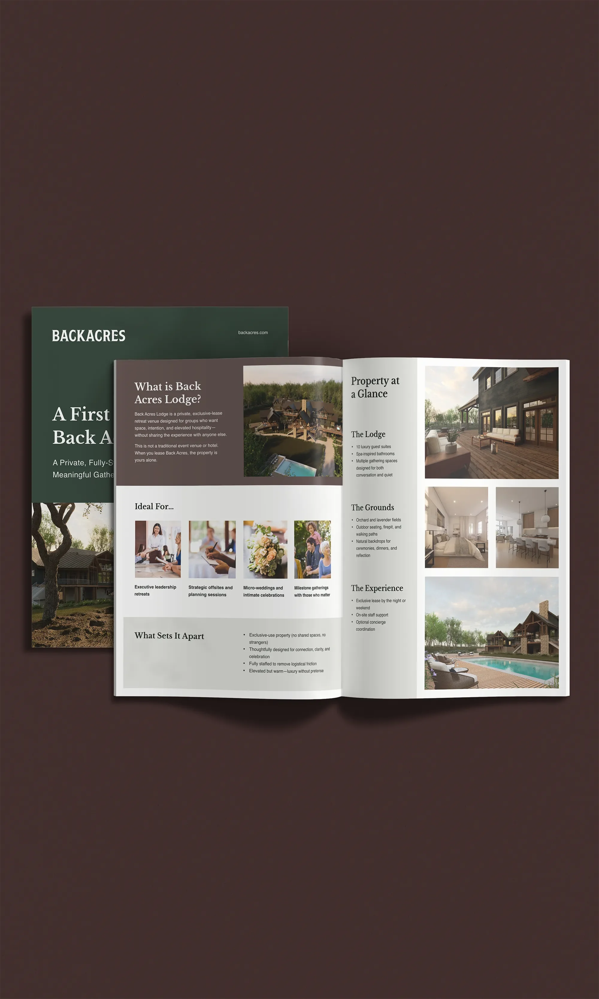 Back Acres Lodge is available for exclusive lease. Luxury accommodations, curated service, and privacy, all yours.